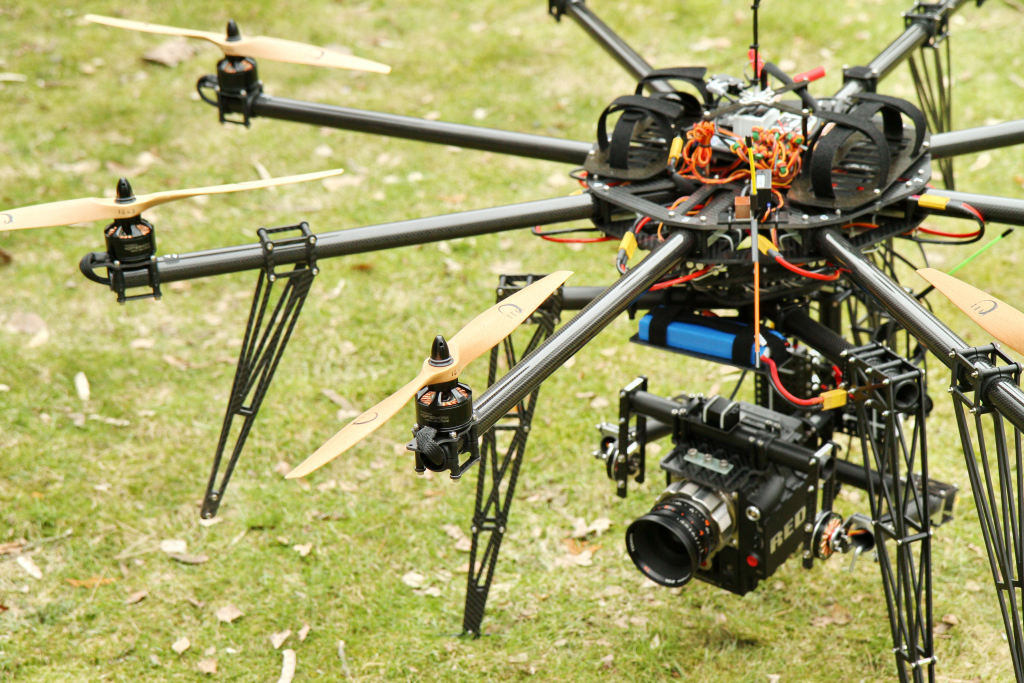 Ferngesteuerte Drohnen oder Multikopter bieten eine breite Palette von Aufnahmemöglichkeiten, minimalen Platzbedarf und einen Bruchteil der Kosten im Vergleich zu einem montion-control Kran oder Hubschrauber.